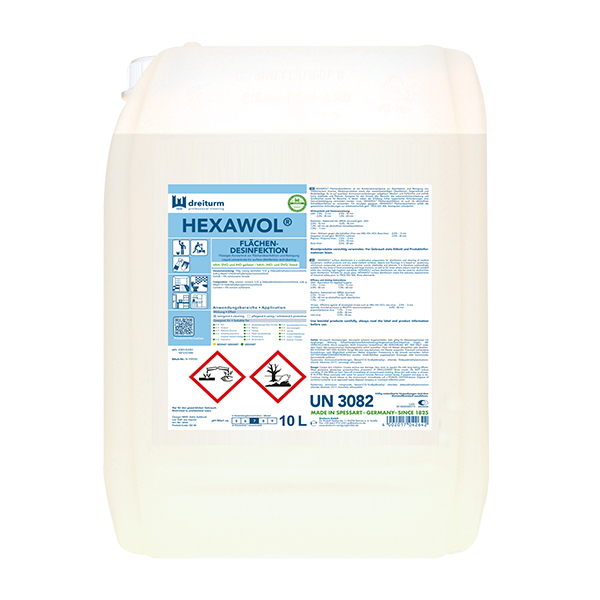 HEXAWOL® Flächendesinfektion ist ein Kombinationspräparat zur Desinfektion und Reinigung von medizinischem Inventar, Medizinprodukten sowie aller wasserbeständigen Oberflächen, Gegenstände und Bodenbeläge.